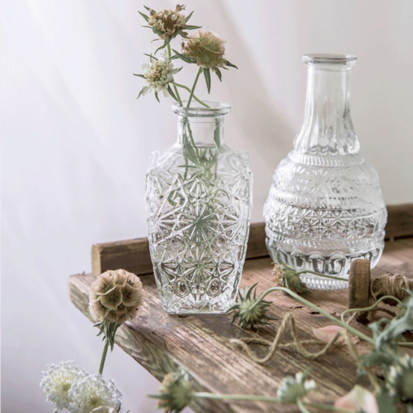 ○ボックステイルのような形状の、涼し気なフラワーベースです。