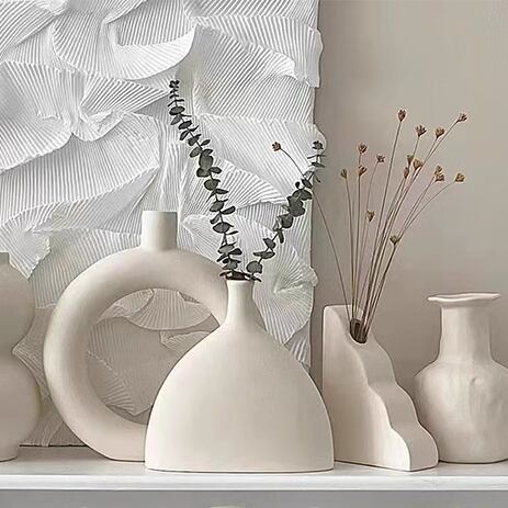 心踊る花々と共に、フラスコ型ホワイトフラワーベースがお部屋を彩ります。お気に入りのお花を挿して、癒しの空間を演出してみませんか。