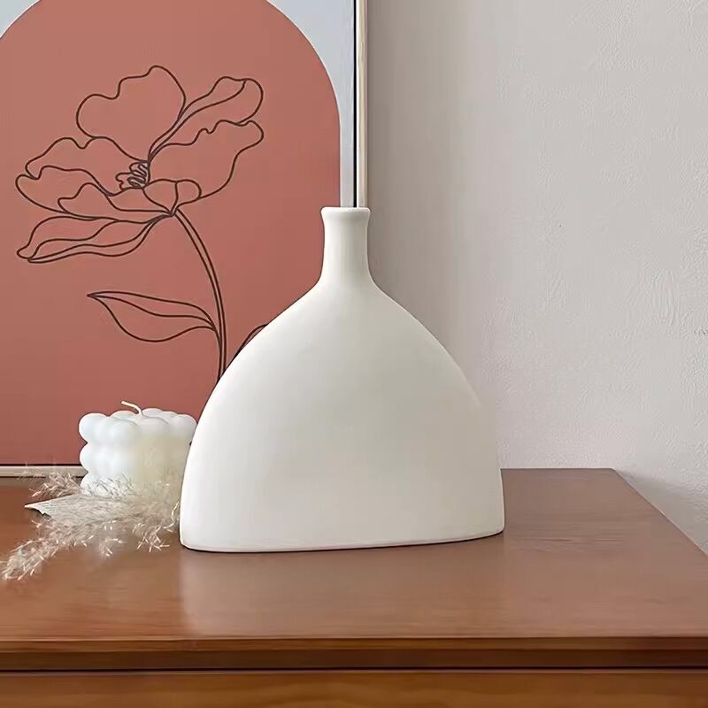 フラスコ型ホワイトフラワーベースは、シンプルで洗練されたデザインが特徴の花瓶です。白いフラスコ型のベースは、どんなお部屋にも馴染みやすく、お花を美しく引き立ててくれます。お花を挿すだけでなく、インテリアとしてもお部屋を素敵に演出してくれるアイテムです。