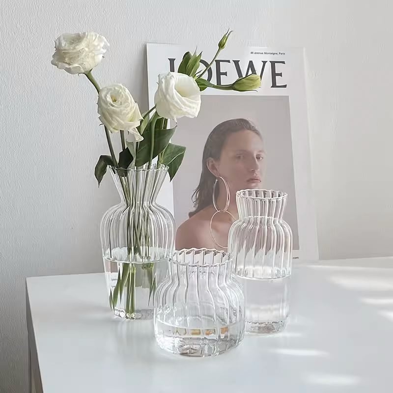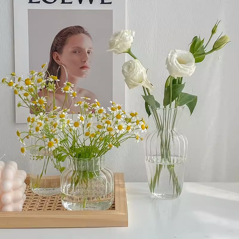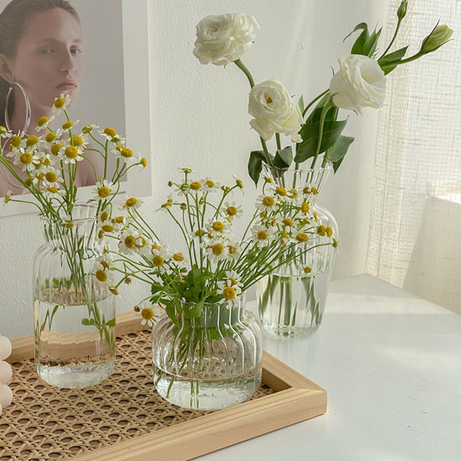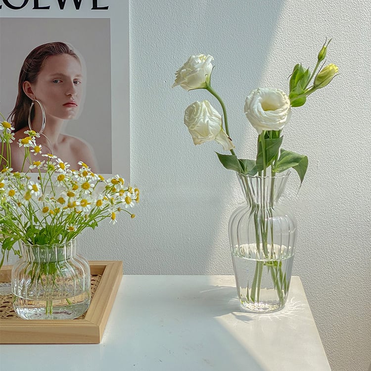○4つのデザインよりお選びいただける、ボトル型のフラワーベースです。 ーSizeー A(口径:4.8cm 底幅:5.5cm 高さ:12.5cm) B(口径:6cm 底幅:7.5cm 高さ:8.5cm) C(口径:6cm 底幅:5cm 高さ:15cm) D(口径:8cm 底幅:6.5cm 高さ:15cm) ーColorー Clear 《発着期間》 10日から14日を予定しておりますが、当商品は海外からお取り寄せさせていただいておりますので、状況によってはお時間をいただく可能性がございます。 [ご注文前に必ずお読みください] https://korano.official.ec/about ボトル型フラワーベースは、お部屋を彩るアクセントとして最適なアイテムです。4つの異なるデザインのボトル型からお選びいただけます。シンプルでありながらもモダンなデザインは、どんなお部屋にも馴染みます。 自然光の反射が美しく日常に溶け込みます。お気に入りの花を活けて楽しめるアイテムです。