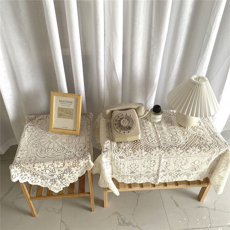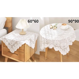 ○レース素材の可愛らしいホワイトカラーのテーブルクロスです。