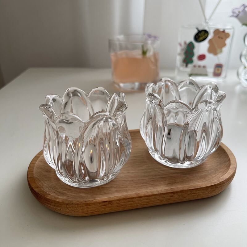 チューリップ型ガラスキャンドルホルダー