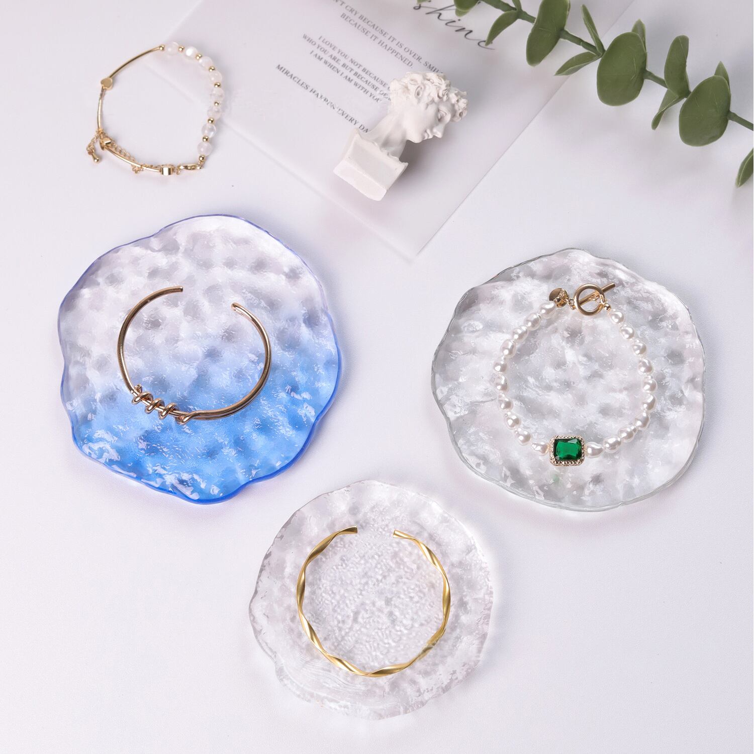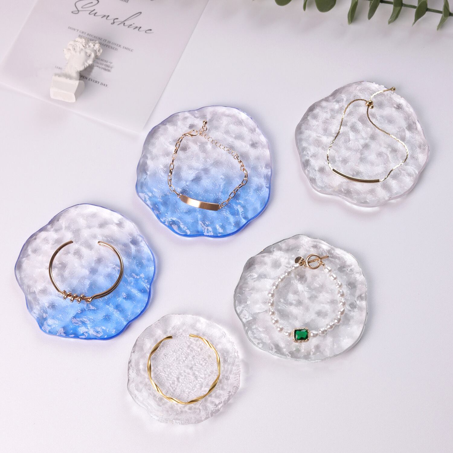 ○ガラス製の透明なアクセサリープレートです。水晶を模したデザインでお洒落にアクセサリーをディスプレイできます。 ーSizeー 大:直径約10.5cm 小:直径約9cm ーColorー ・透明クリア 大 ・透明ブルー 大 ・透明レッド 大 ・透明クリア 小 ーSpecificationー 材質:ガラス 《発着期間》 10日から14日を予定しておりますが、当商品は海外からお取り寄せさせていただいておりますので、状況によってはお時間をいただく可能性がございます。 [ご注文前に必ずお読みください] https://korano.official.ec/about 透明なガラス製アクセサリープレートで、お気に入りのアクセサリーを美しくディスプレイしませんか?水晶を模したデザインは、上品で上質な雰囲気を演出します。